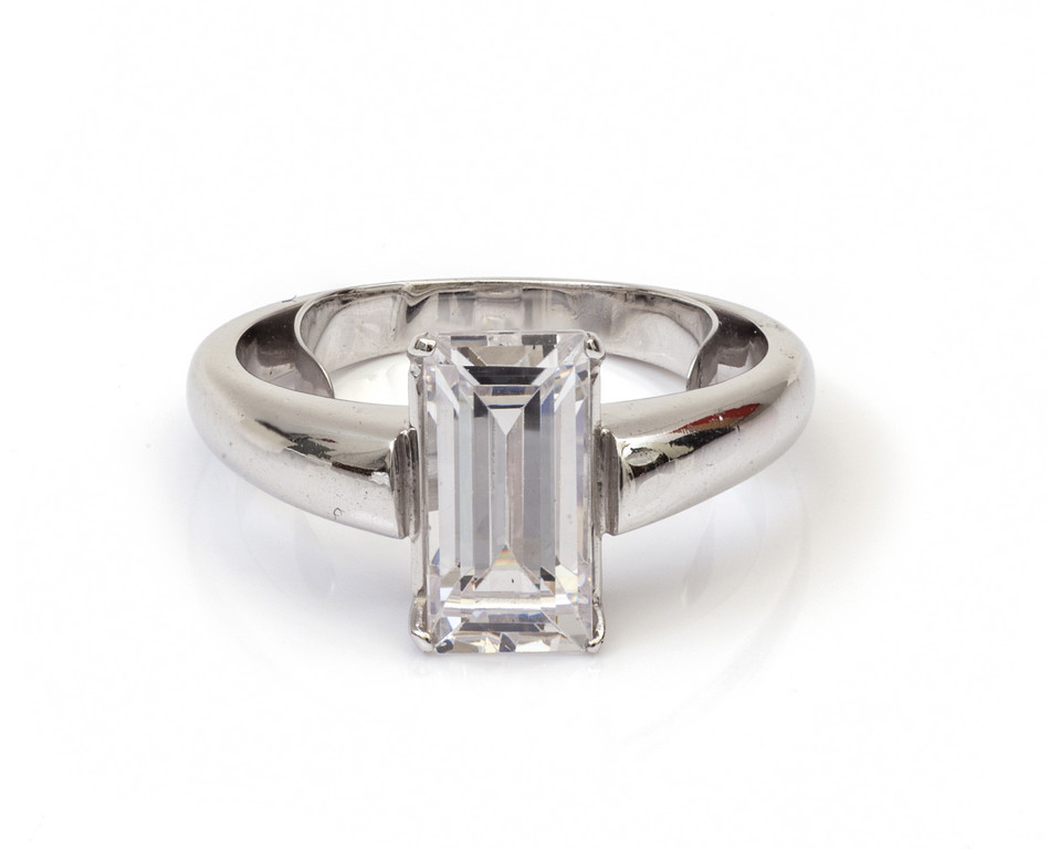Anello in oro bianco a forma di solitaire con incastonato uno zircone taglio smeraldo