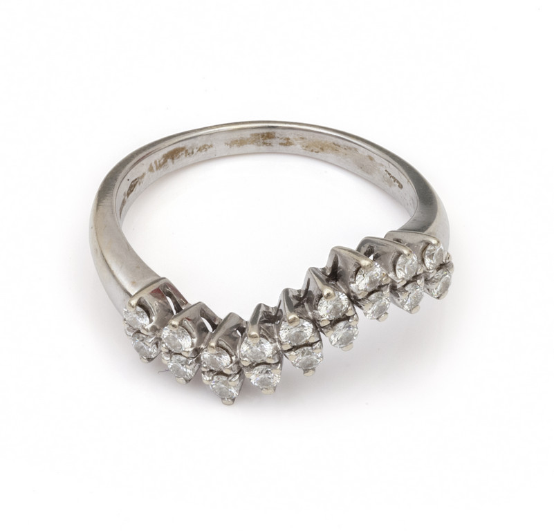 Anello in oro bianco a forma di doppia riviere con incastonati diciotto diamanti taglio brillante per tot ct 0,90 circa