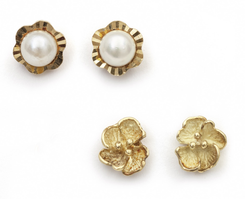 Lotto composto da due coppie di orecchini in oro giallo con piccole perle