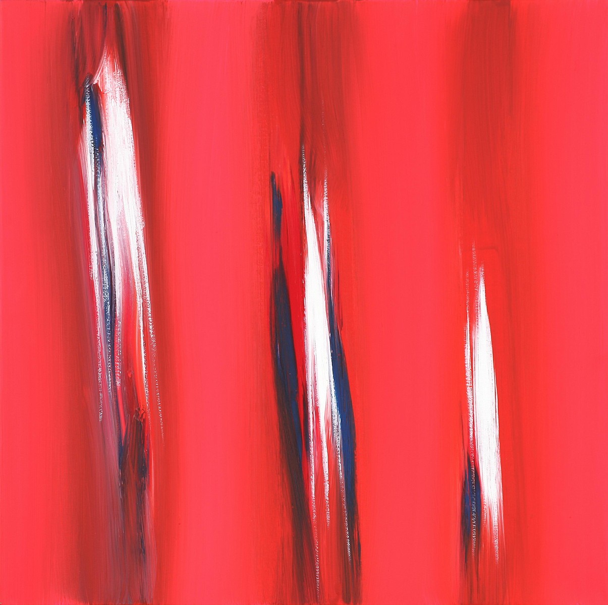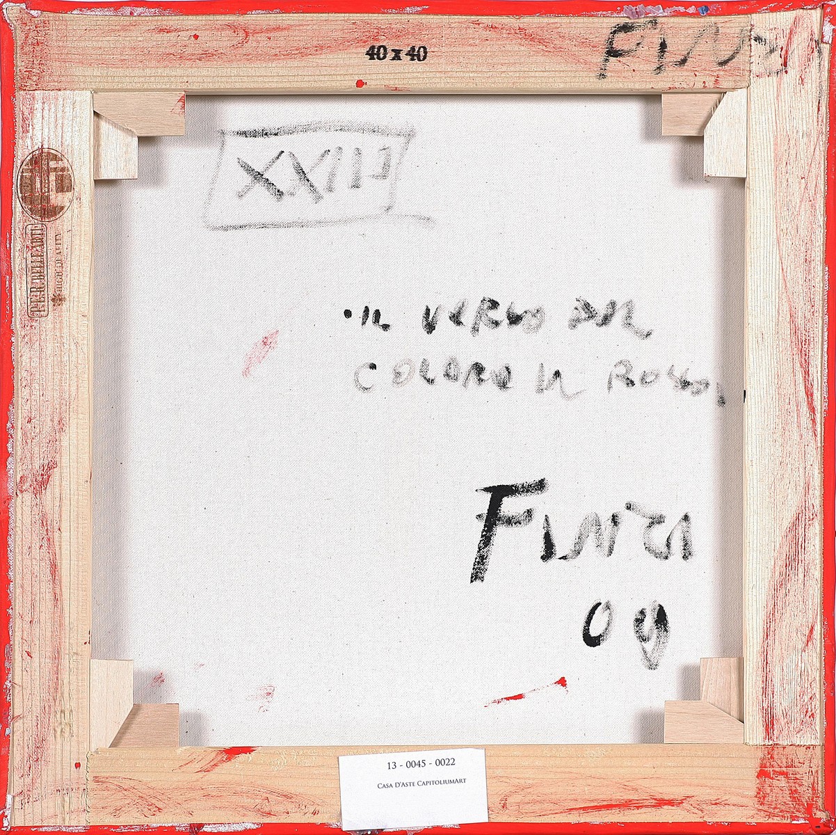 FINZI ENNIO (n. 1931) Il verso del colore in rosso. 2009. Olio su tela. Cm 40,00 x 40,00. Autentica dell'artista su fotografia. Al retro titolo, firma e data.