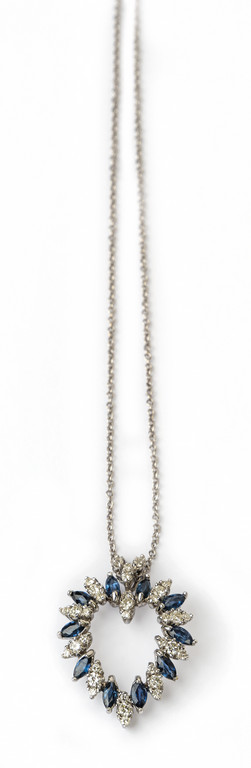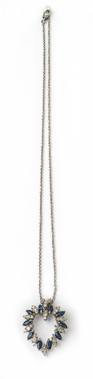 Collana maglia groumette portante un ciondolo a forma di cuore con incastonati zaffiri taglio navette per tot ct 2,00 circa e diamanti taglio brillante per tot ct 1,70 circa