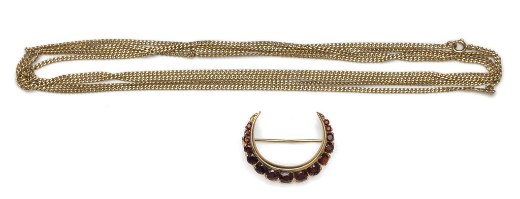 Lotto composto da una spilla a forma di mezzaluna ed una collana sottile