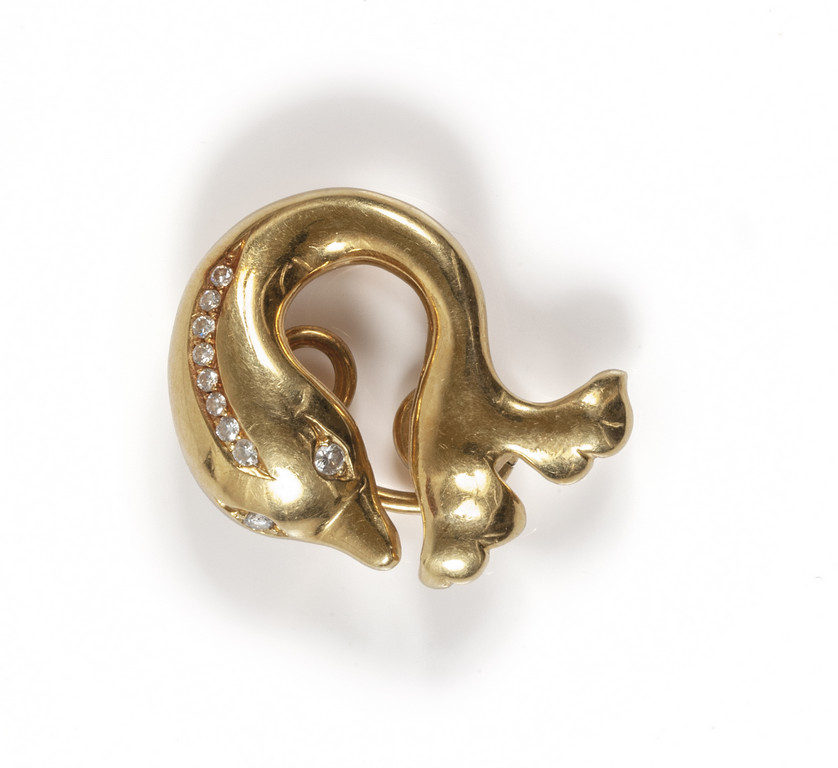 Pendente a forma di delfino in oro giallo con diamanti taglio brillante