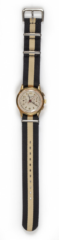 Orologio chrono marca Patek Philippe in oro giallo, quadrante champagne, indici e numeri arabi