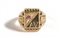 Anello in oro giallo da uomo a forma di scudo con incastonato piccolo rubino naturale e monogramma inciso A.V.
