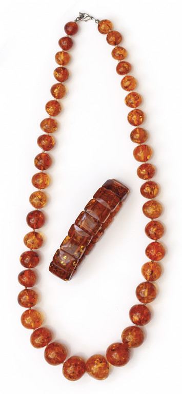 Lotto composto da un filo di ambra formato da sfere degradè di mm 14/23 ed un bracciale sempre in ambra formato da placche