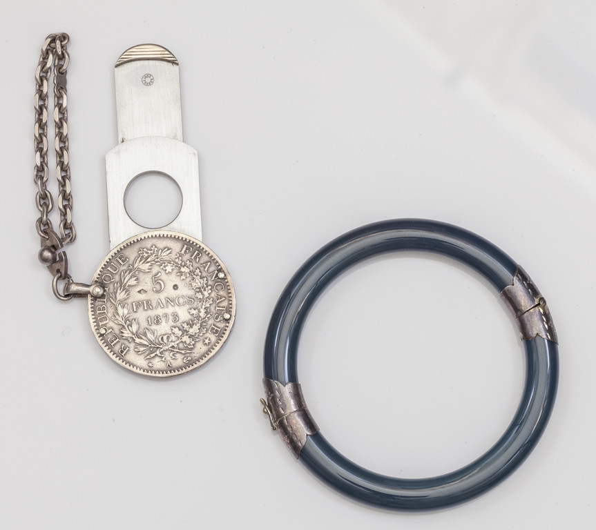 Lotto composto da un bracciale di forma rigida ed un taglia carte in argento