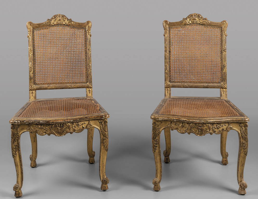 Due sedie Napoleone III in legno intagliato e dorato, Francia sec.XIX