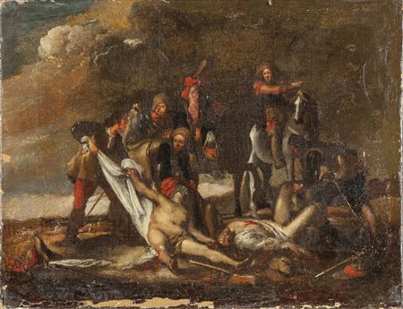 Scuola genovese sec.XVII "Dopo la battaglia" olio