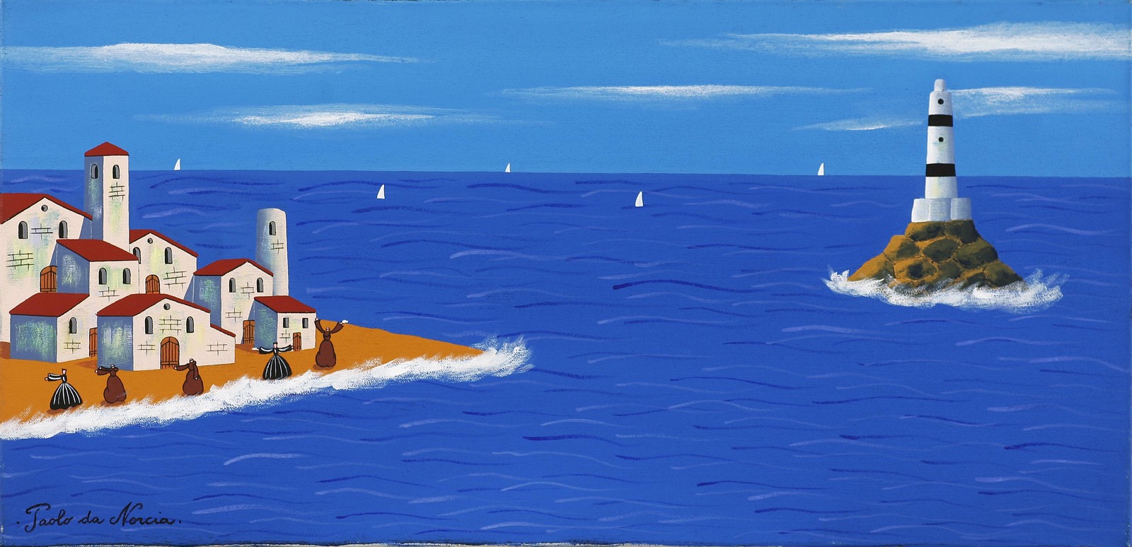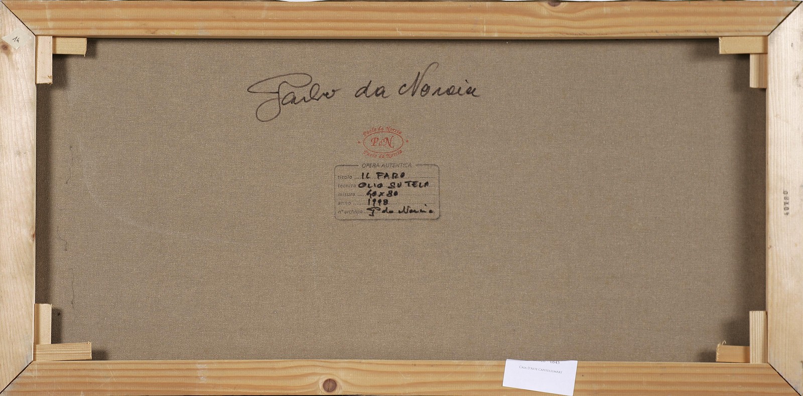 DA NORCIA PAOLO (n. 1953) Il faro. Olio su tela. Cm 80,00 x 40,00. Firma in basso a sinistra. Al retro timbro Paolo da Norcia controfirmato dall'artista.