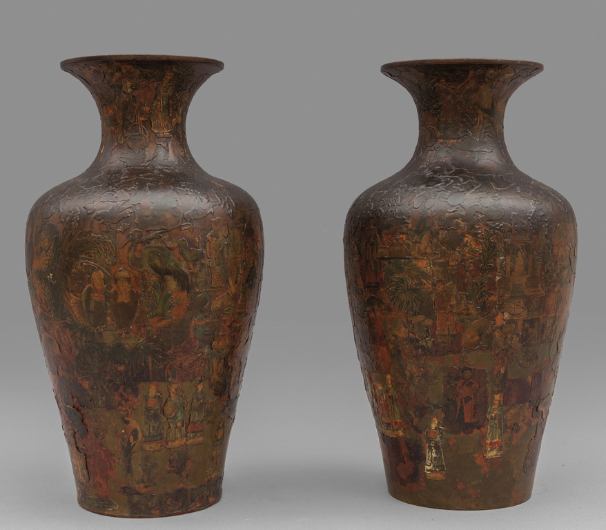 Coppia di vasi in terracotta decorati a cineserie, sec.XIX