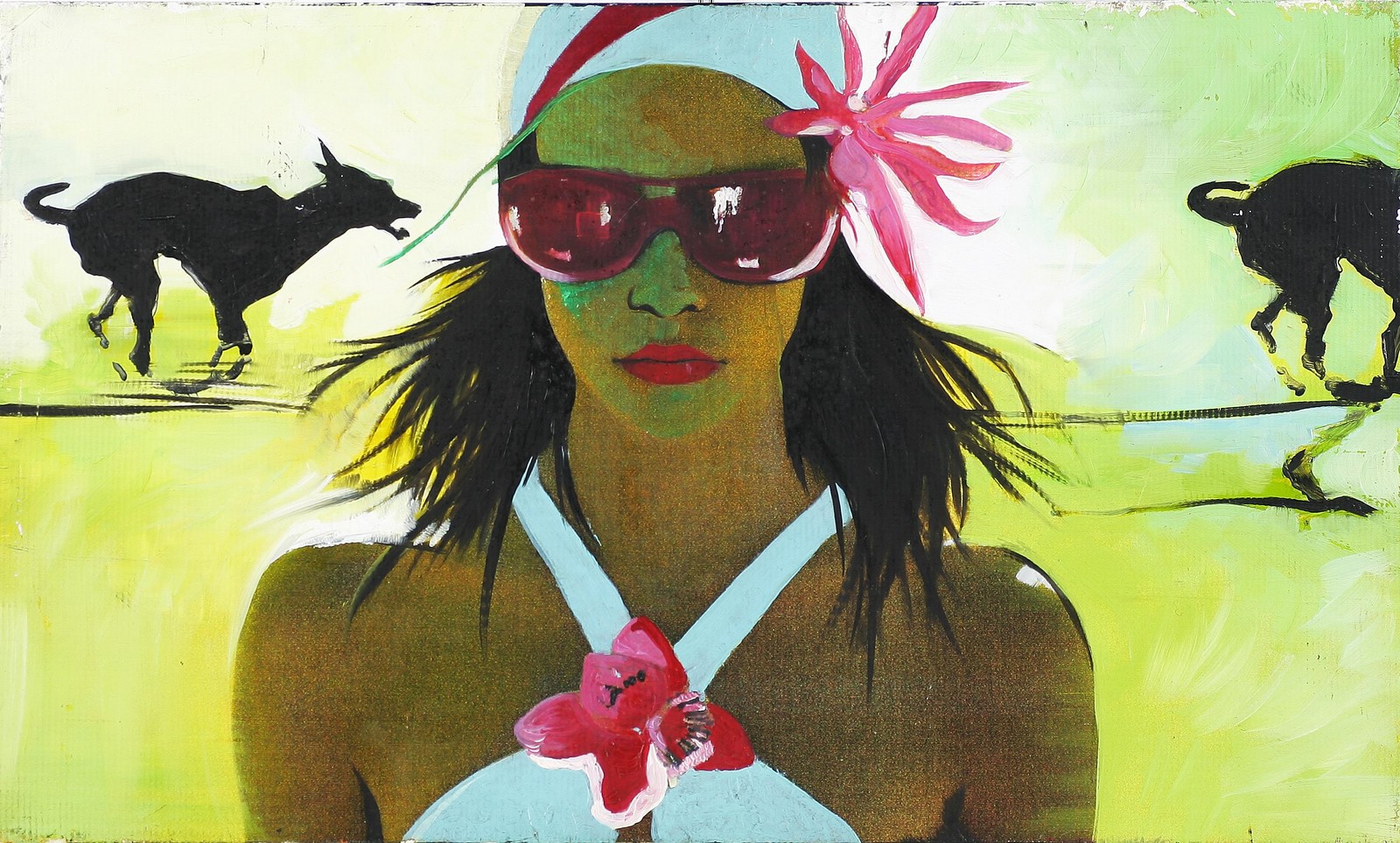 BACHIS LIDIA (n. 1969) Dog girl by Dobermann. 2005. Olio su tela . Cm 50,00 x...