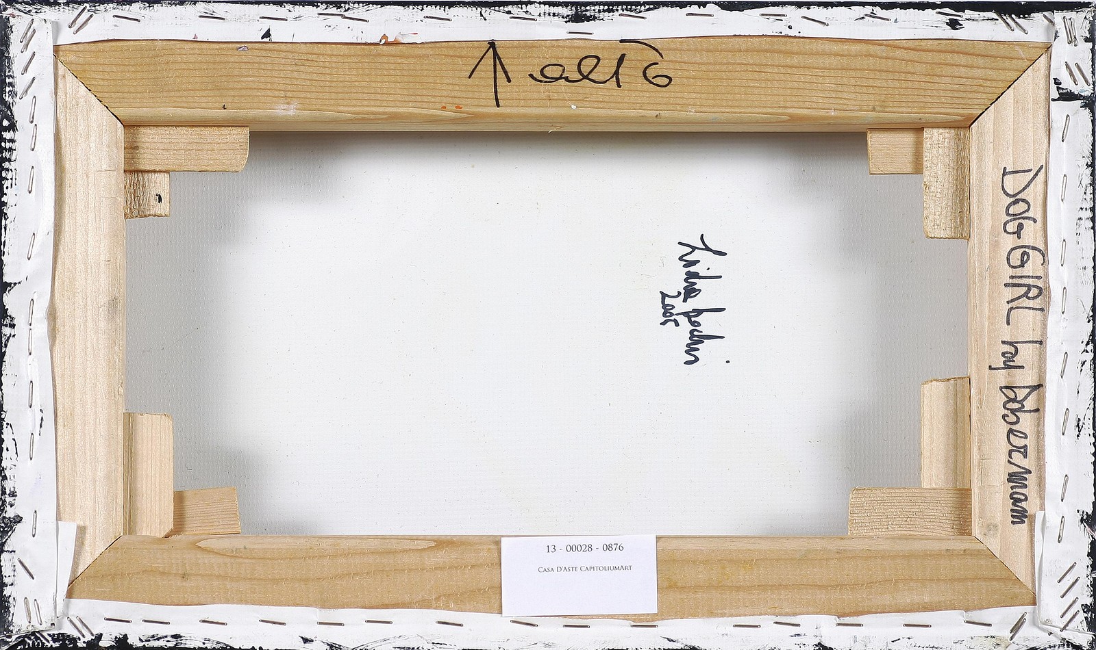 Lot 824 | BACHIS LIDIA (n. 1969) Dog girl by Dobermann. 2005. Olio su tela . Cm 50,00 x...