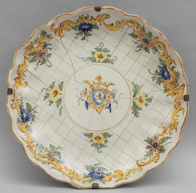 Piatto in maiolica policroma decorato con stemma centrale, Savona sec.XVIII
