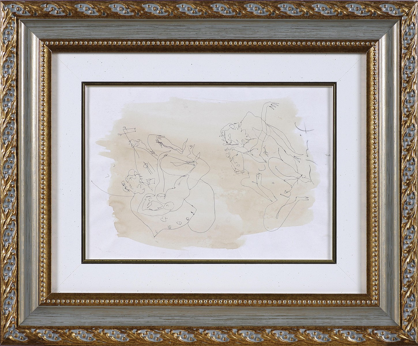 ROGNONI FRANCO (1913 - 1999) Senza titolo. Tecnica mista su carta incollata su tela. Cm 21,00 x 29,50. Firma in basso a destra. Autentica dell'artista su fotografia. Cornice presente