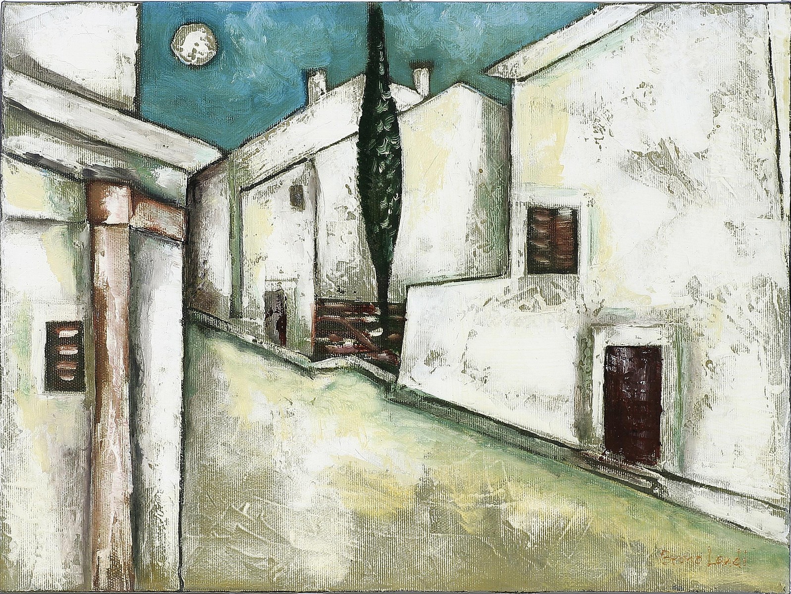 LANDI BRUNO (n. 1941) Paesaggi laziale. 2008. Olio su tela . Cm 40,00 x 30,00 x 4,00. Firma in basso a destra. Al retro firma, titolo e anno. Autentica su fotografia dell'Archivio fotografico generale delle opere di Landi Bruno con relativo numero d'Archivio.