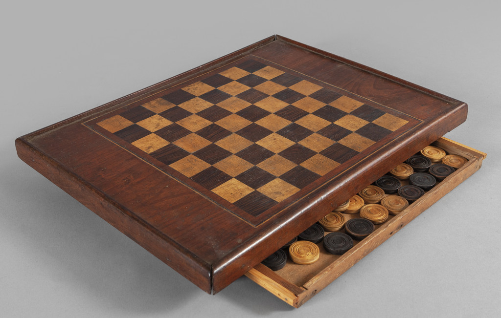 Gioco della dama da tavolo in legno, II metà sec.XVIII
