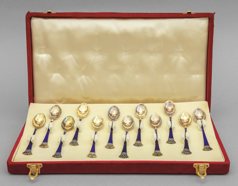 Dodici cucchiaini in argento e smalto blu