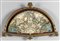 Ventaglio Napoleone III raffigurante scena galante in teca in legno intagliato e dorato
