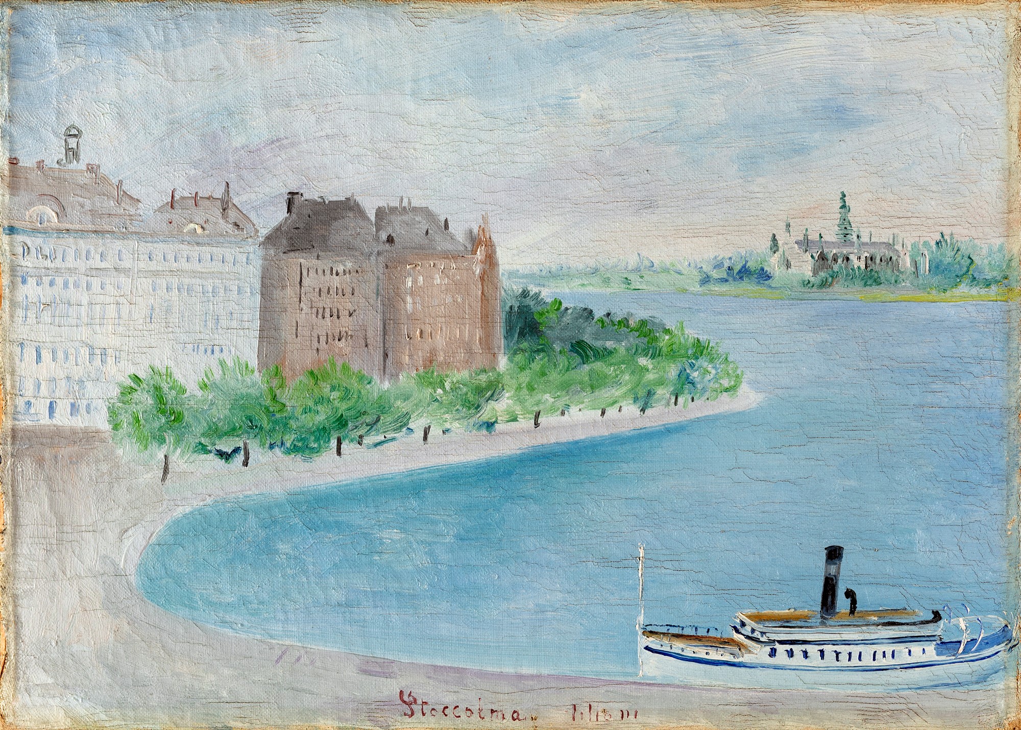 Umberto Lilloni - Stoccolma - Titolo e firma sul fronte in basso. Al verso reca timbro della Galleria Annunciata (Mostra Lilloni 19 Novembre 1949) - Olio su tela - 33x47 – Coll. Roberto Lerici (Roma).