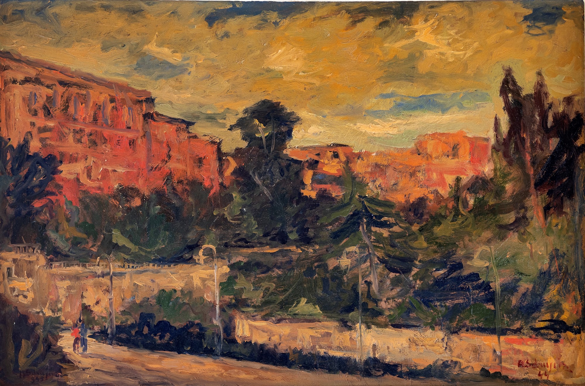 Achille Sdruscia - Veduta di Roma - Firma e data in basso a destra - Olio su rame - 43x62 - 1944