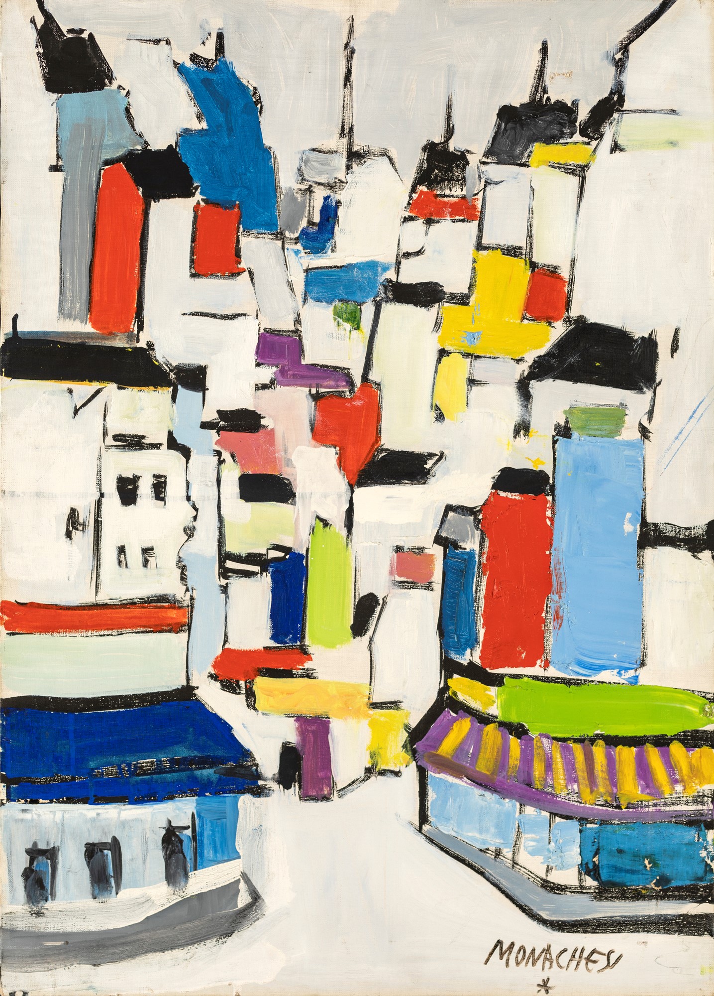 Lot 20 | Sante Monachesi - Paesaggio Parigino - Firma in basso a destra. Al verso reca...