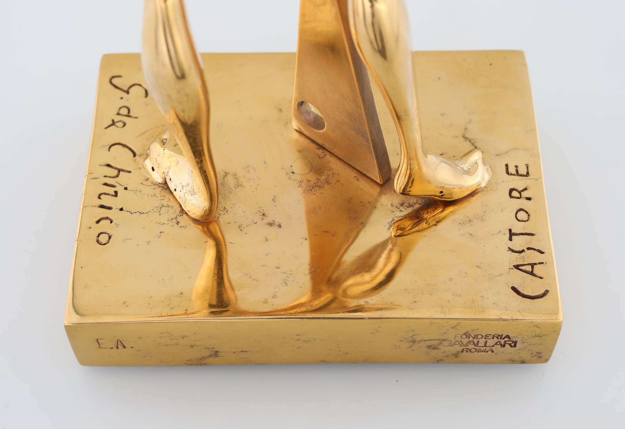 Giorgio De Chirico - Castore - Firma, titolo, numerazione incise sulla base. Punzone Fonderia Cavallari Roma. Esemplare E.A. - Scultura in bronzo dorato - 27 cm (h) -