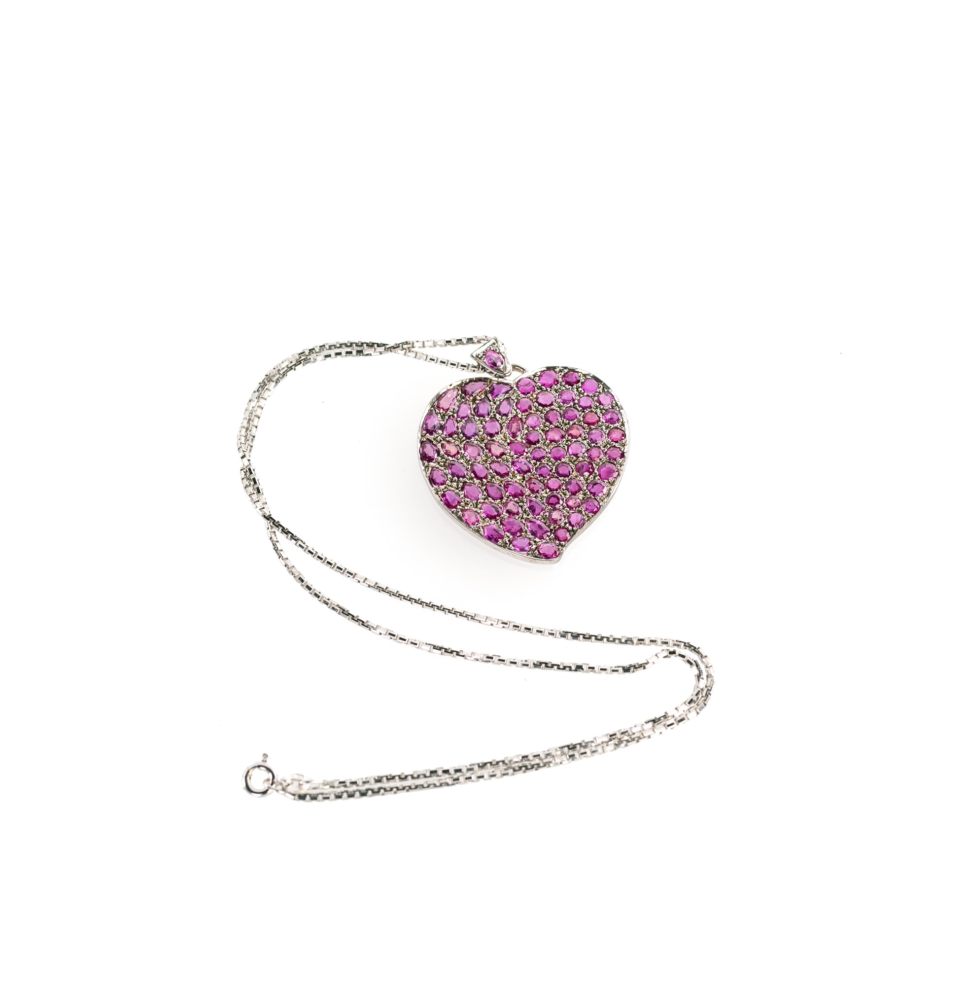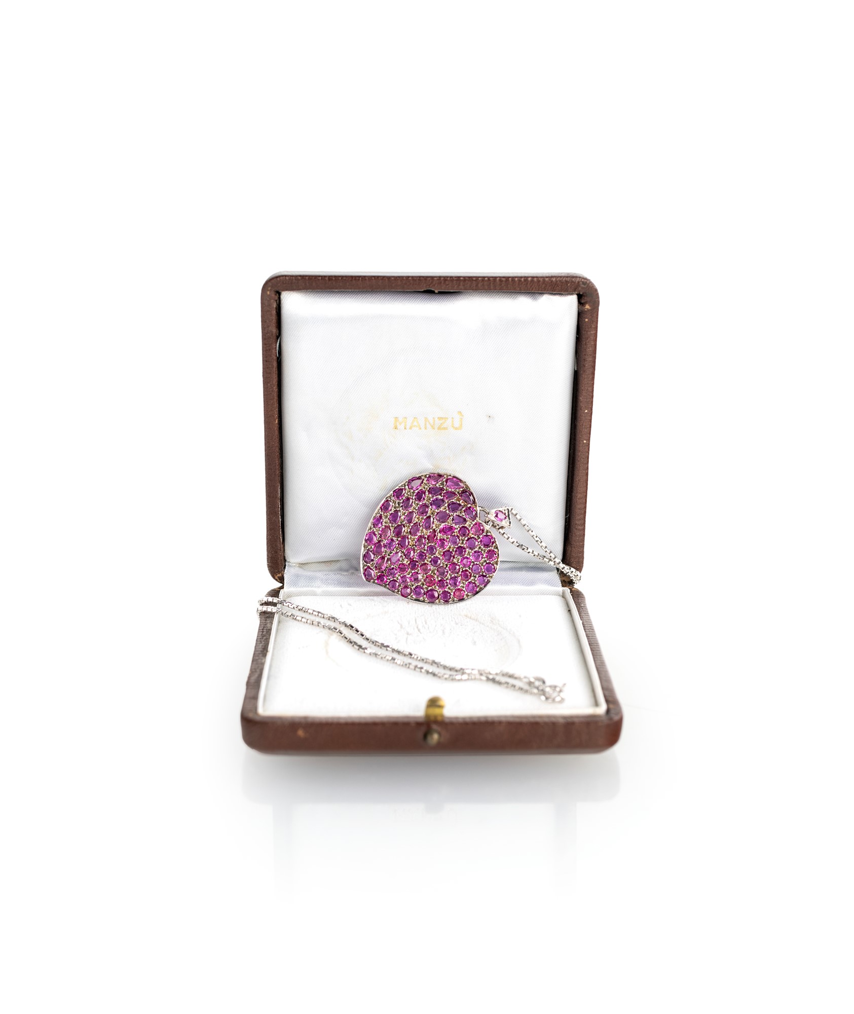 Giacomo Manzù - Cuore - Il gioiello è stato realizzato in un unico esemplare. Le dimensioni del ciondolo sono di 4,5 cm di altezza per 3,6 di larghezza. Scatola originale. - Gioiello in oro bianco con 73 rubini - - 1965