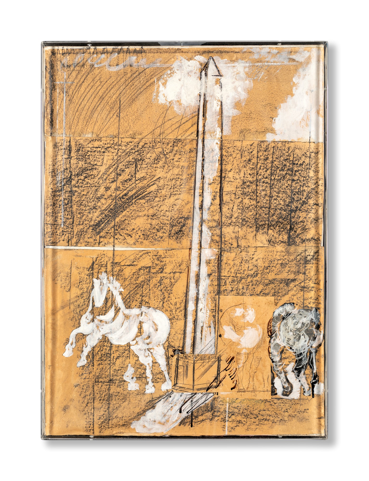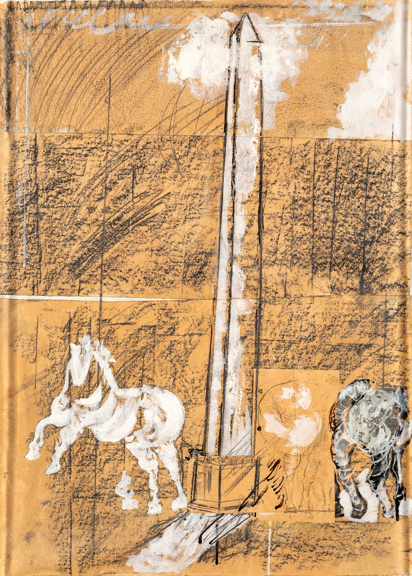 Franco Angeli - Senza titolo - Certificato di autenticità dell'Archivio Franco Angeli - Tecnica mista su carta intelata - 70x50 - Seconda metà anni '70