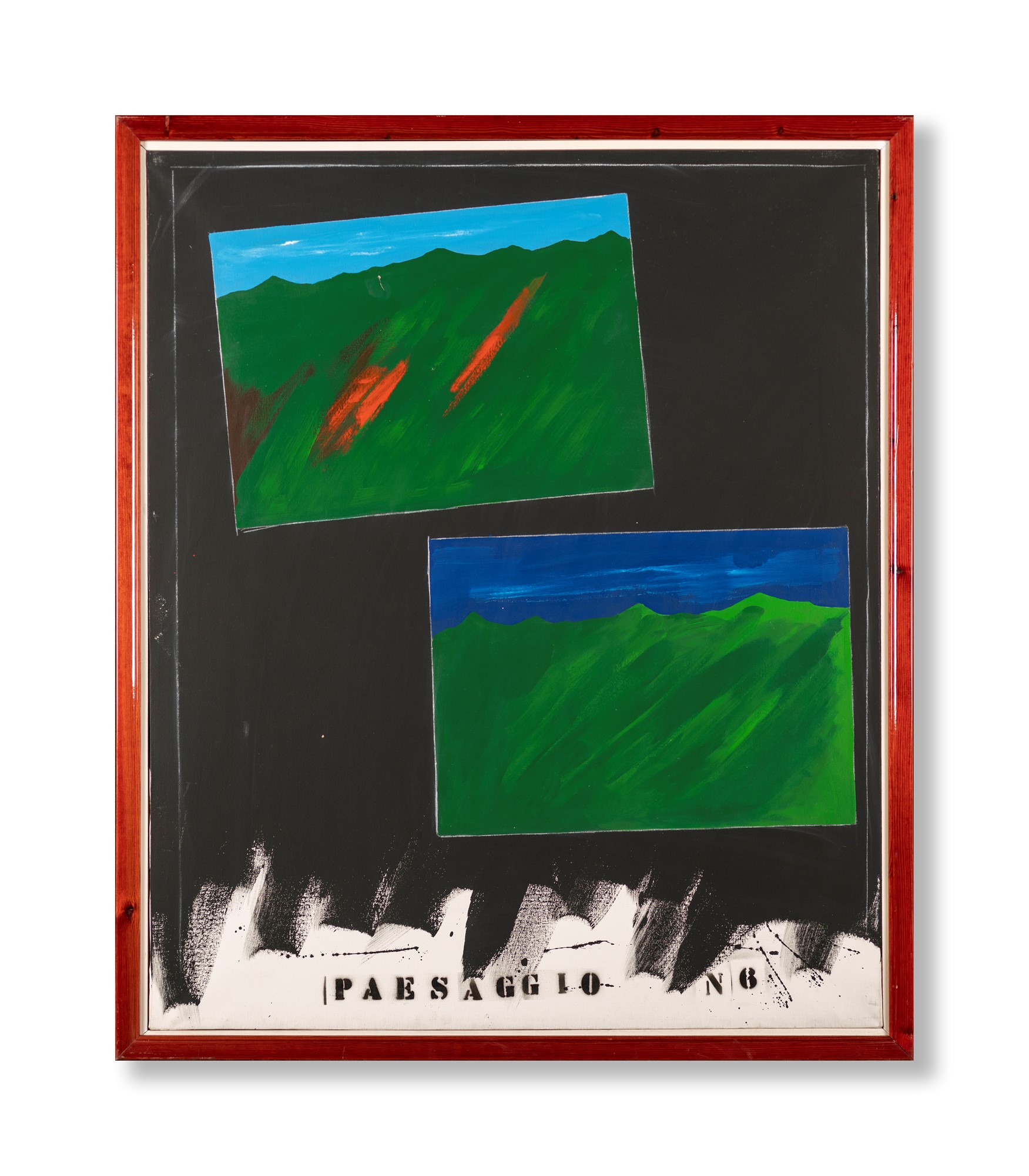 Franco Angeli - Paesaggio N. 6 - Al verso reca firma e titolo. - Smalto, tempera, spray e pastello su tela - 120x100 - 1973-79 - Coll. Eredi G. Carandente