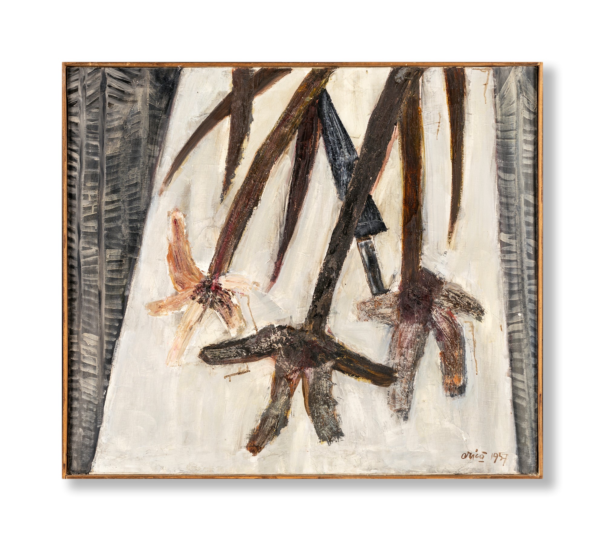 Rodolfo Aricò - Fiori Grigi - Firmato e datato in basso a destra e sul retro - olio su tela - 70x80 - 1957