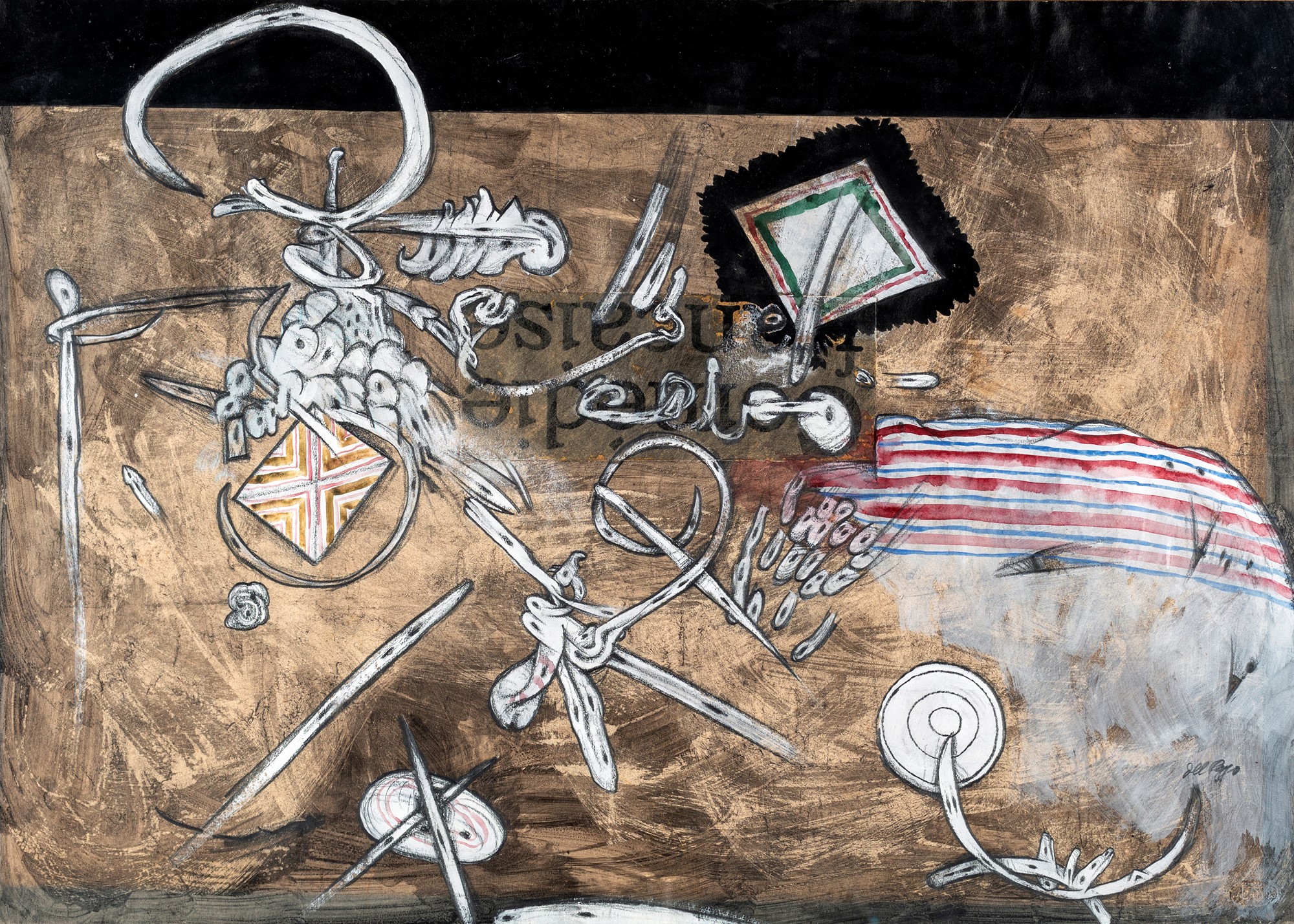 Lucio Del Pezzo - Senza titolo - Firma sul fronte in basso a destra. - Matita, tempera acquarello su carta - 50x70 - - Coll. Roberto Lerici (Roma).