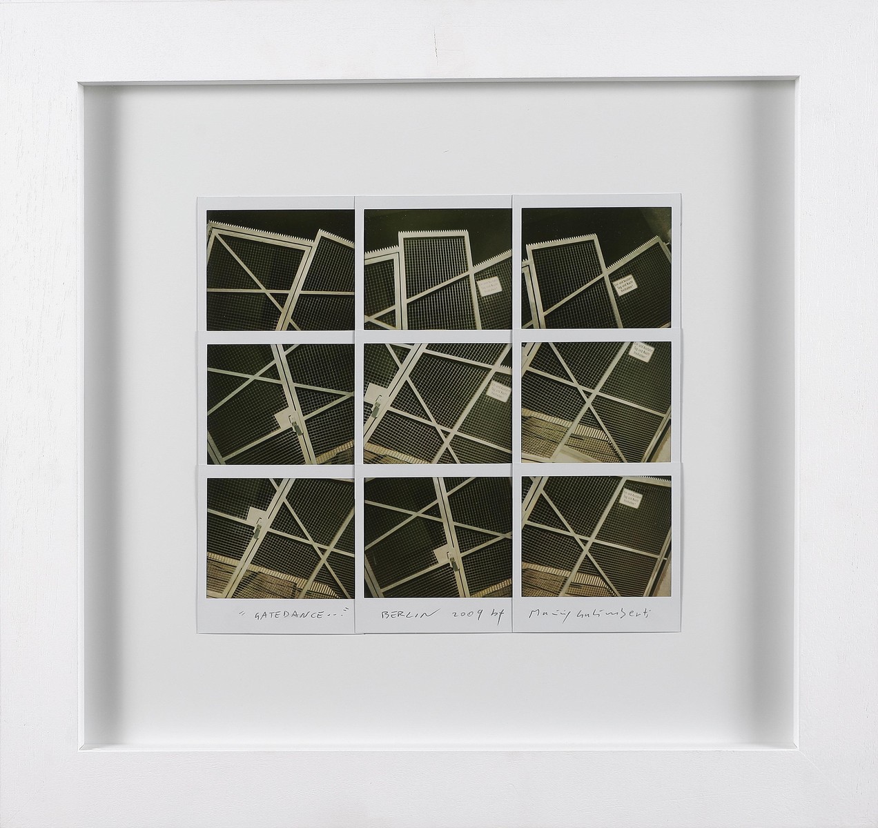 GALIMBERTI MAURIZIO (n. 1956) "Gatedance..." Berlin 2009. 2009. Mosaico di polaroid. Cm 28,50 x 26,00. Titolo, anno e firma in basso a matita. Al retro cartiglio dell'Archivio Nordest di Seregno Autentica su fotografia dell'Archivio Nordest, Seregno. Cornice presente