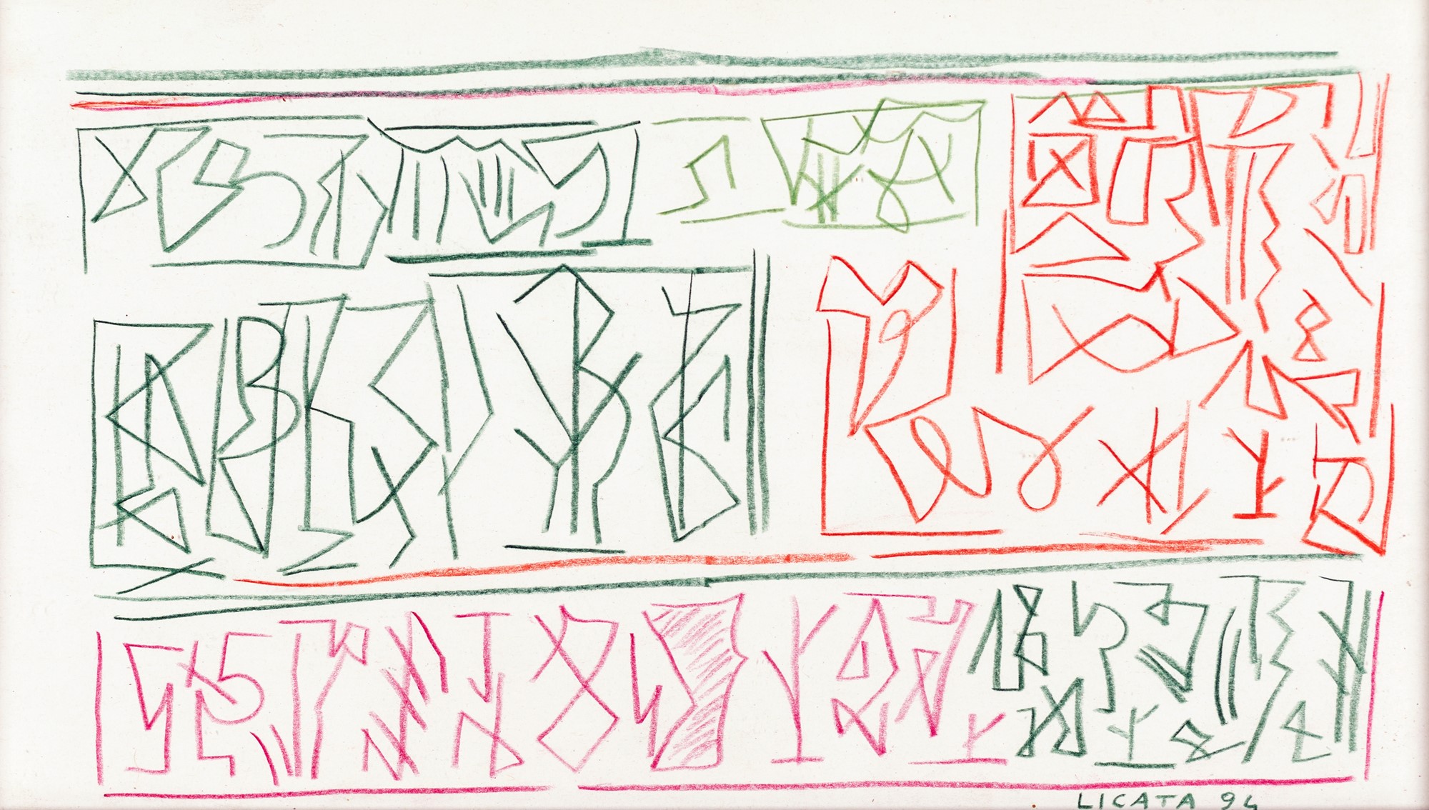 Riccardo Licata - Senza titolo - Firma e data sul fronte in basso a destra - Pastelli su carta - 20x35 - 1994