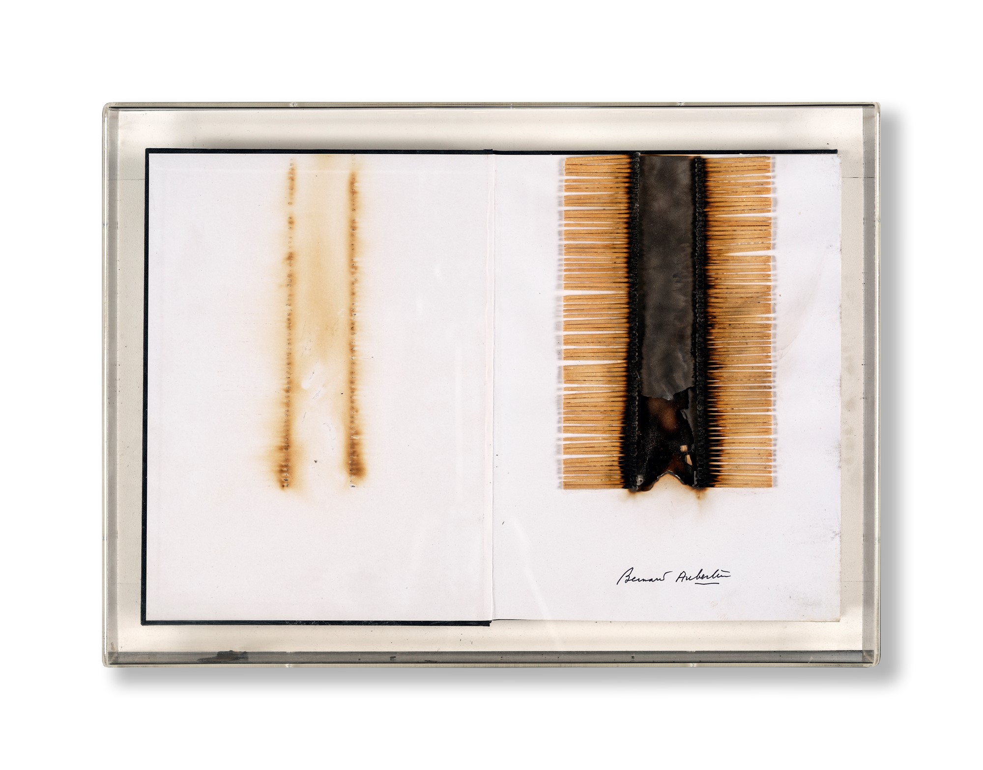 Bernard Aubertin - Senza titolo - - Fiammiferi e combustione su libro...