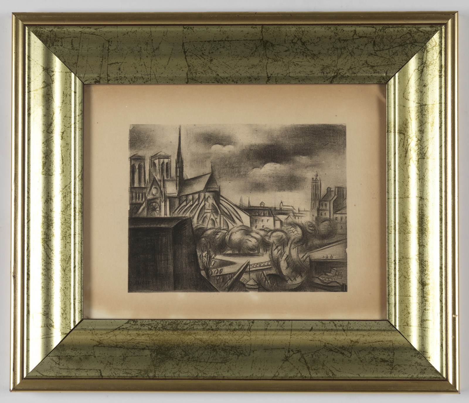 LHOTE ANDRE (1885 - 1962) Notre Dame. 1927. Litografia. Cm 16,50 x 12,50. Litografia originale da Portraits d'artistes di Jacque Guenne. Carta Arches. Edizioni MarcelSeheur. Paris 1927. Firma in lastra in basso a sinistra. . Cornice presente