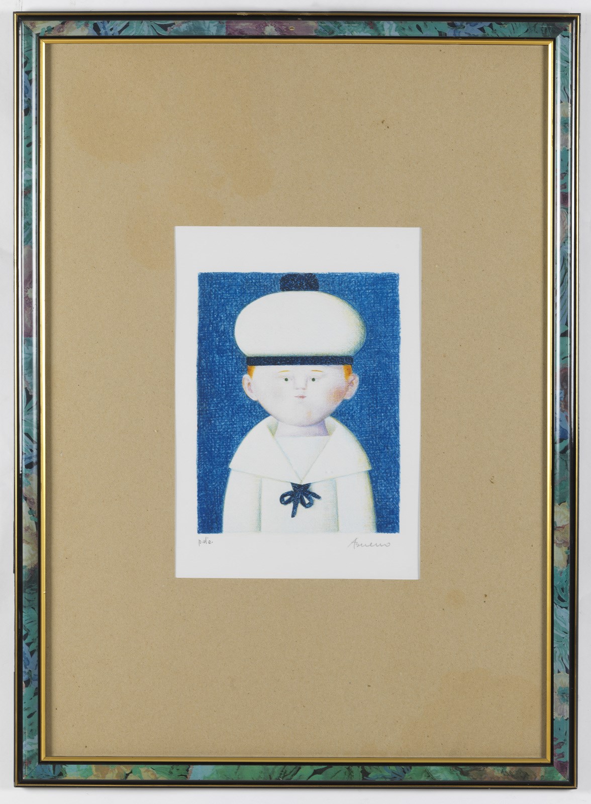 BUENO ANTONIO (1918 - 1985) Senza titolo. Litografia. Cm 25,50 x 35,00. P.d.a. Tiratura e firma in basso a matita. Cornice presente
