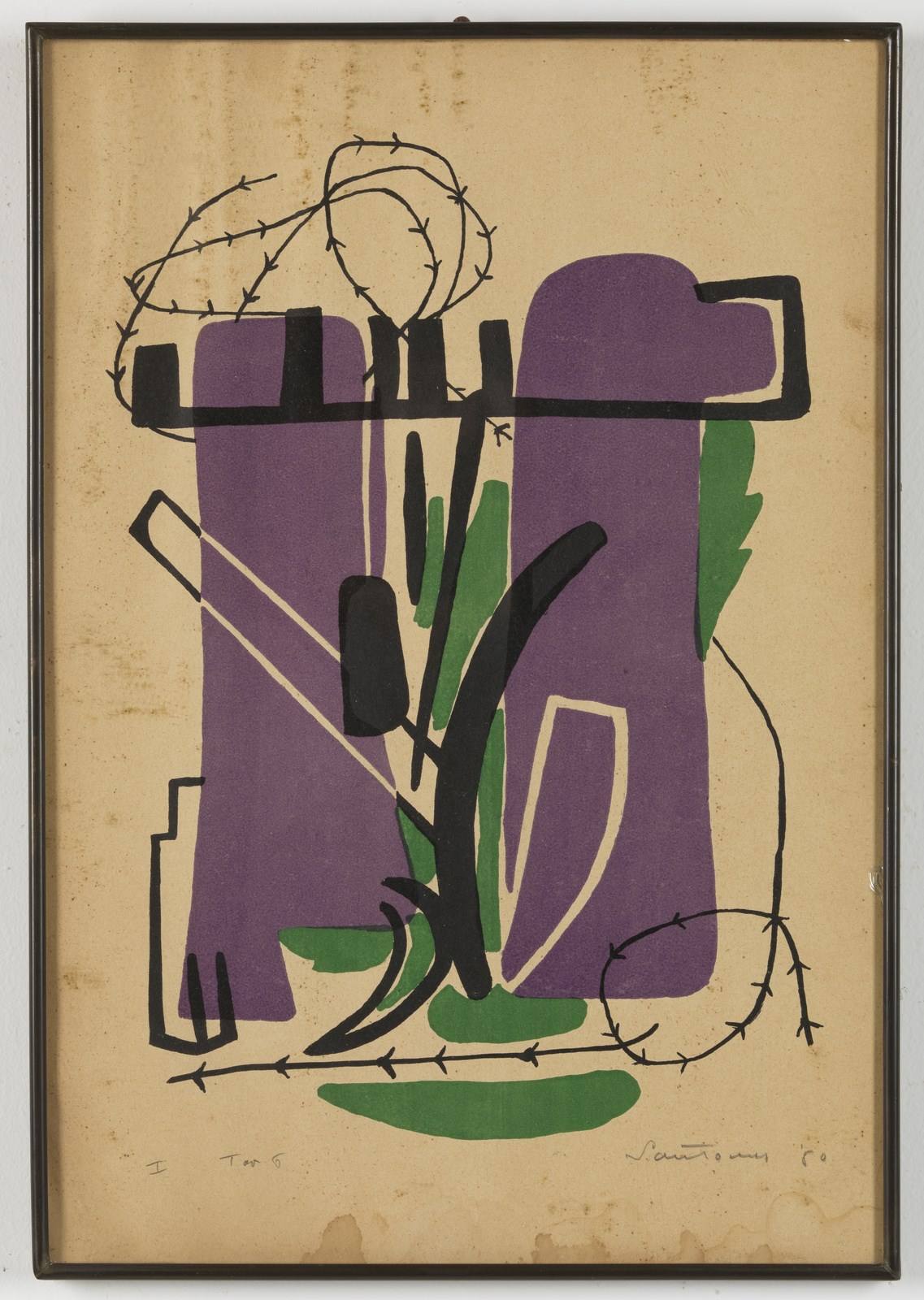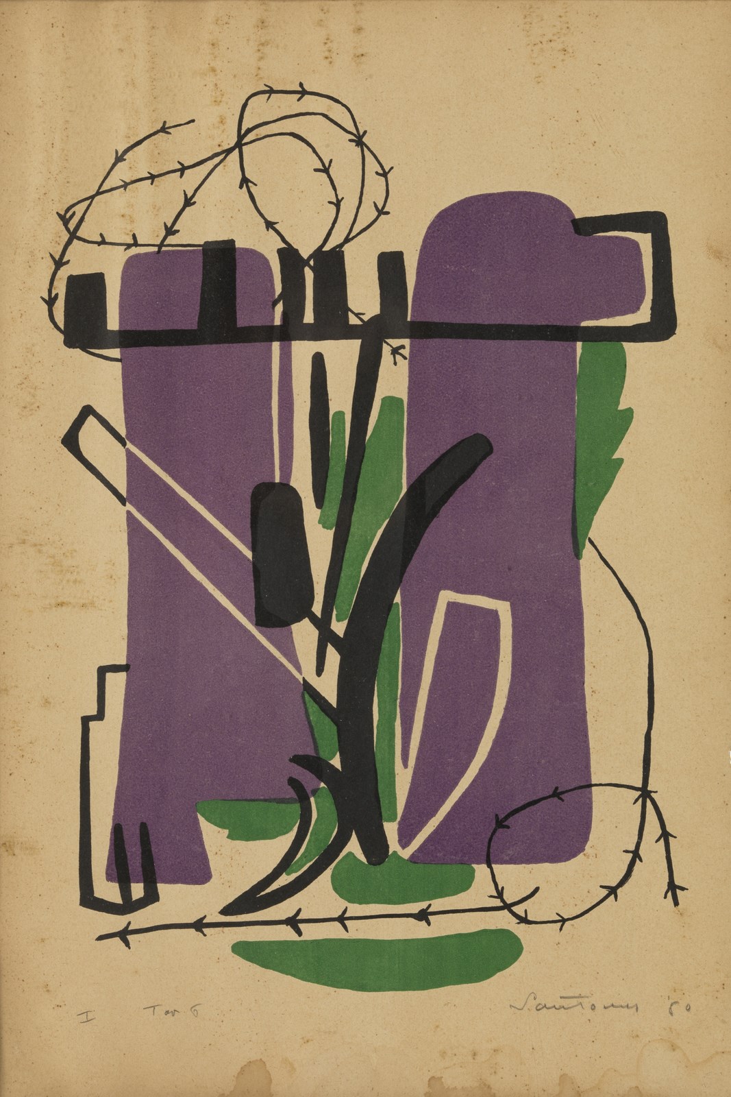 SANTOMASO GIUSEPPE (1907 - 1990) Senza titolo. Litografia. Cm 33,00 x 48,00. 1 tav.6. Firma e anno in basso a destra a matita. Difetti. Cornice presente
