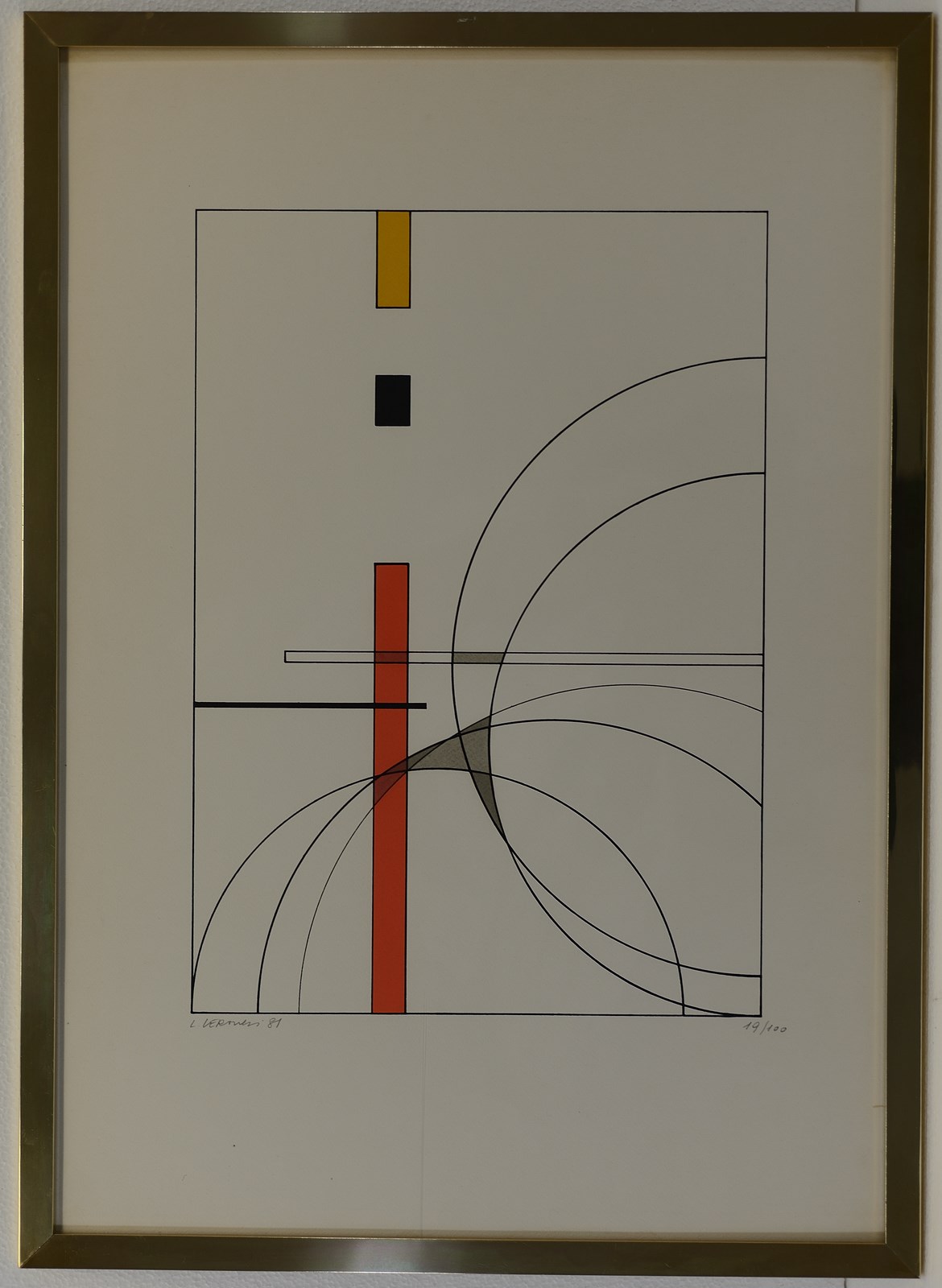 VERONESI LUIGI (1908 - 1998) Senza titolo. 1981. Litografia. Cm 50,00 x 70,00. Litografia a colori. Es. 19/100. Foglio cm 70 x 50. Lastra cm 47 x 33. Firma data tiratura a matita. Cornice presente