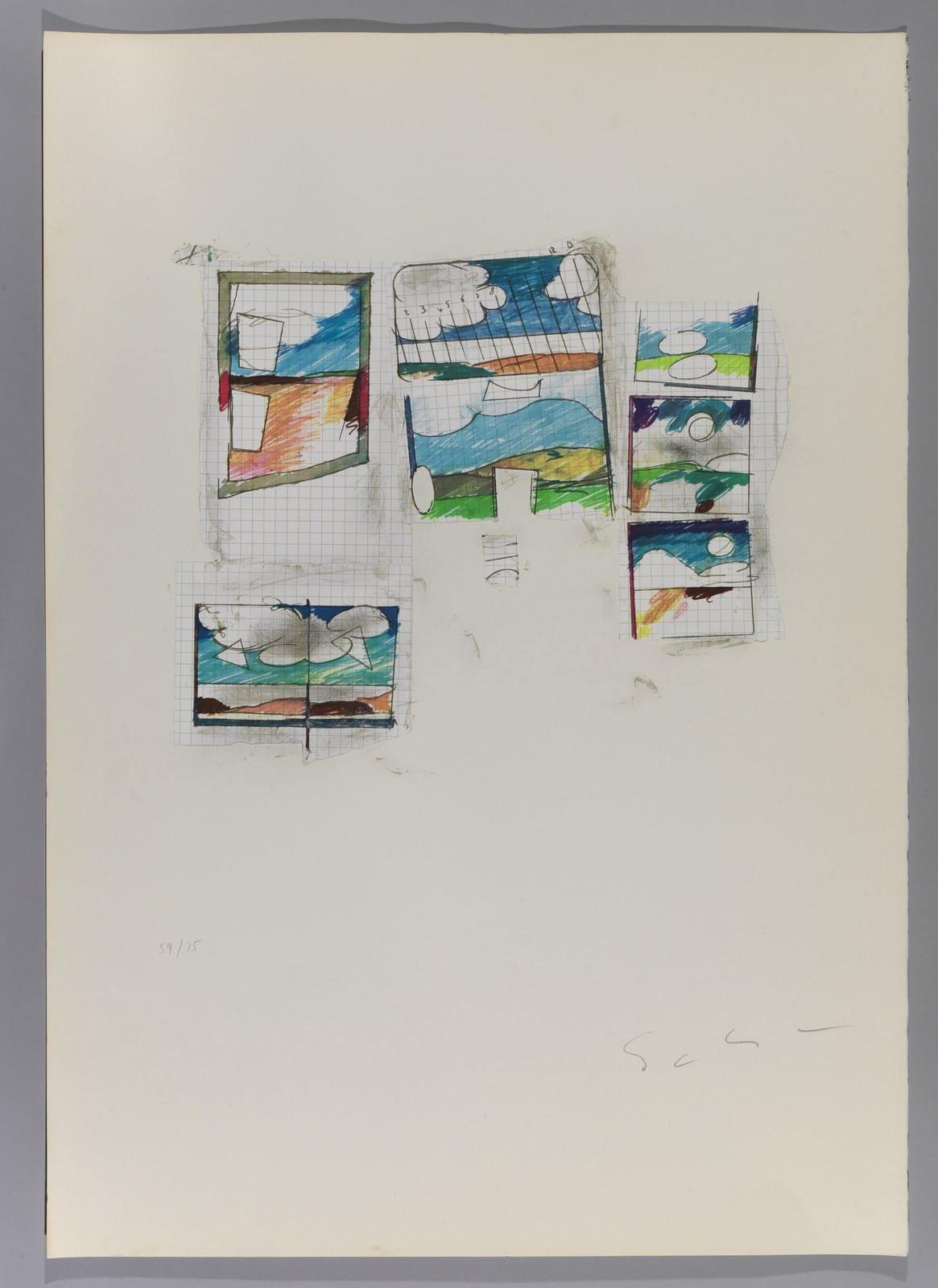 SCHIFANO MARIO (1934 - 1998) Senza Titolo. Serigrafia e collage. Cm 60,00 x 84,00. 59/75. Tiratura e firma a matita in basso.