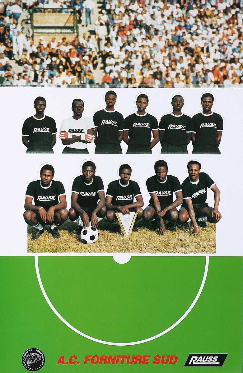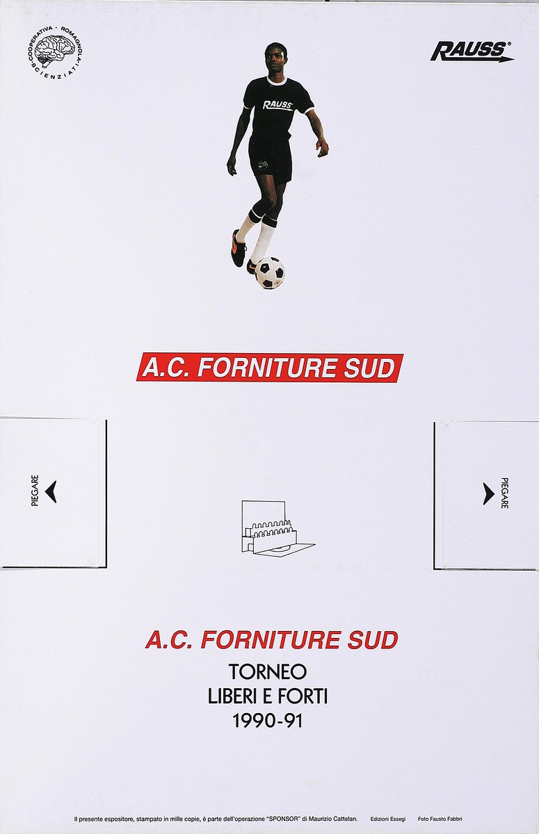 CATTELAN MAURIZIO (n. 1960) AC forniture sud. 1991. Serigrafia. Cm 22,00 x 34,00. Espositore ripiegabile in cartoncino stampato in 1000 copie, Edizioni Essegi, foto Fausto Fabbri.