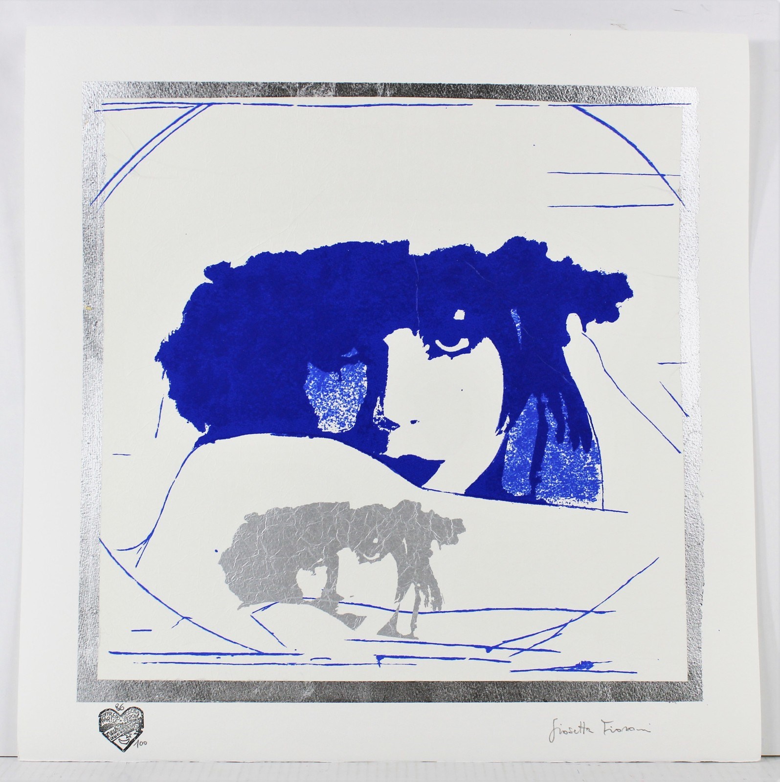 FIORONI GIOSETTA (n. 1932) Doppio liberty blu. Serigrafia ritoccata a mano. Cm 50,00 x 50,00. 86/100. Firma in basso a destra, tiratura e timbro Archivio Fioroni in basso a sinistra. Ceritificato di autenticità La Spirale, Milano con timbro Archivio Fioroni.