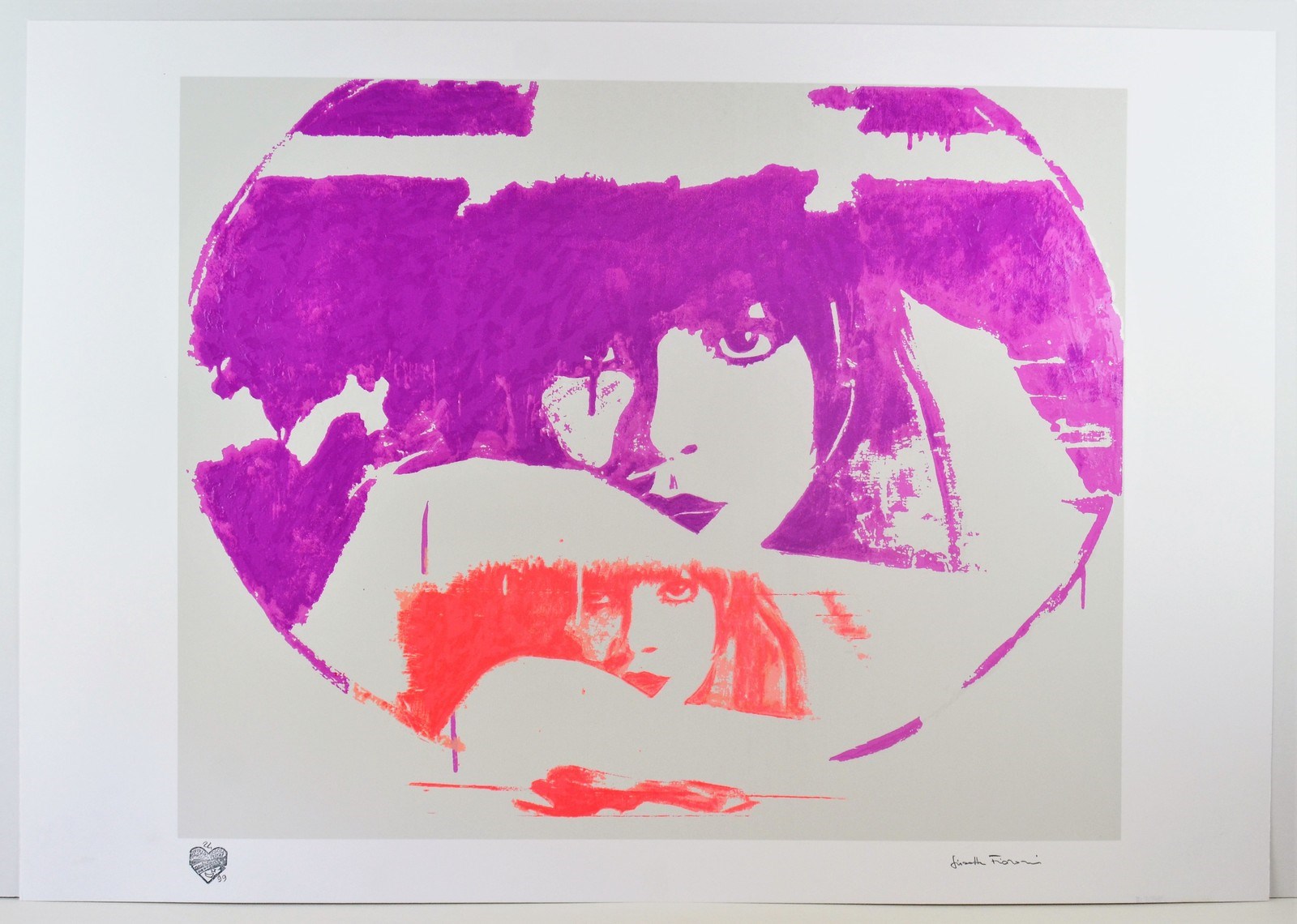 FIORONI GIOSETTA (n. 1932) Senza titolo. serigrafia polimaterica e carborundum a 12 colori (Viola e rosa). Cm 100,00 x 70,00. 24/99. Firma in basso a destra, tiratura e timbro dell'Archivio Parisi Fioroni in basso a sinistra. Certificato di autenticità La Spirale, Milano con timbro dell'Archivio Parisi Fioroni.
