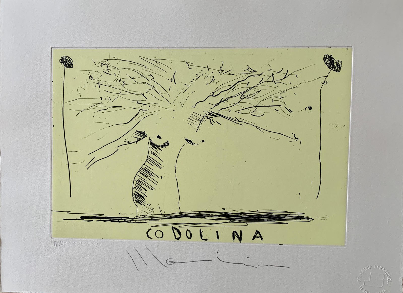 MONDINO ALDO (1938 - 2005) Senza titolo. Serigrafia, puntasecca. Cm 39,50 x 30,00. P.a.Tiratura e firma a matita in basso. Timbro a secco Stamperia Berardinelli, Verona in basso a destra. Dimensione lastra: 18.5x28.5 cm. Foto esemplificativa.