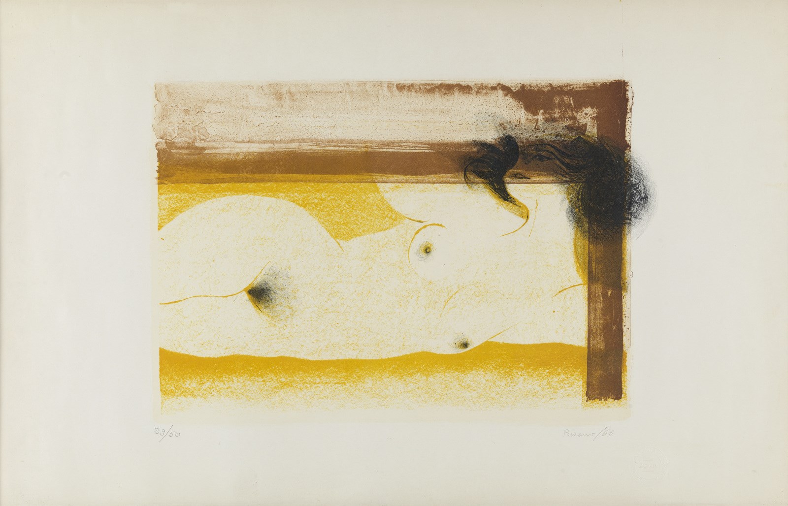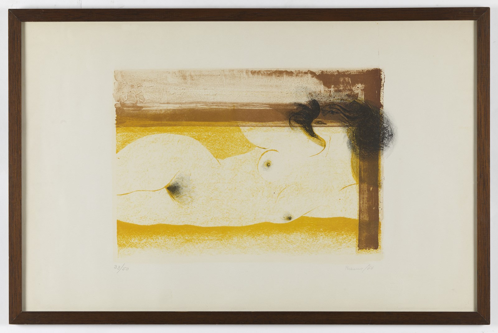 PORZANO GIACOMO (1925 - 2006) Senza titolo. 1966. Litografia. Cm 69,00 x 44,00. 33/50. Tiratura, firma e anno a matita in basso. Timbro a secco Galleria Margutta, Roma in basso a destra. Cornice presente