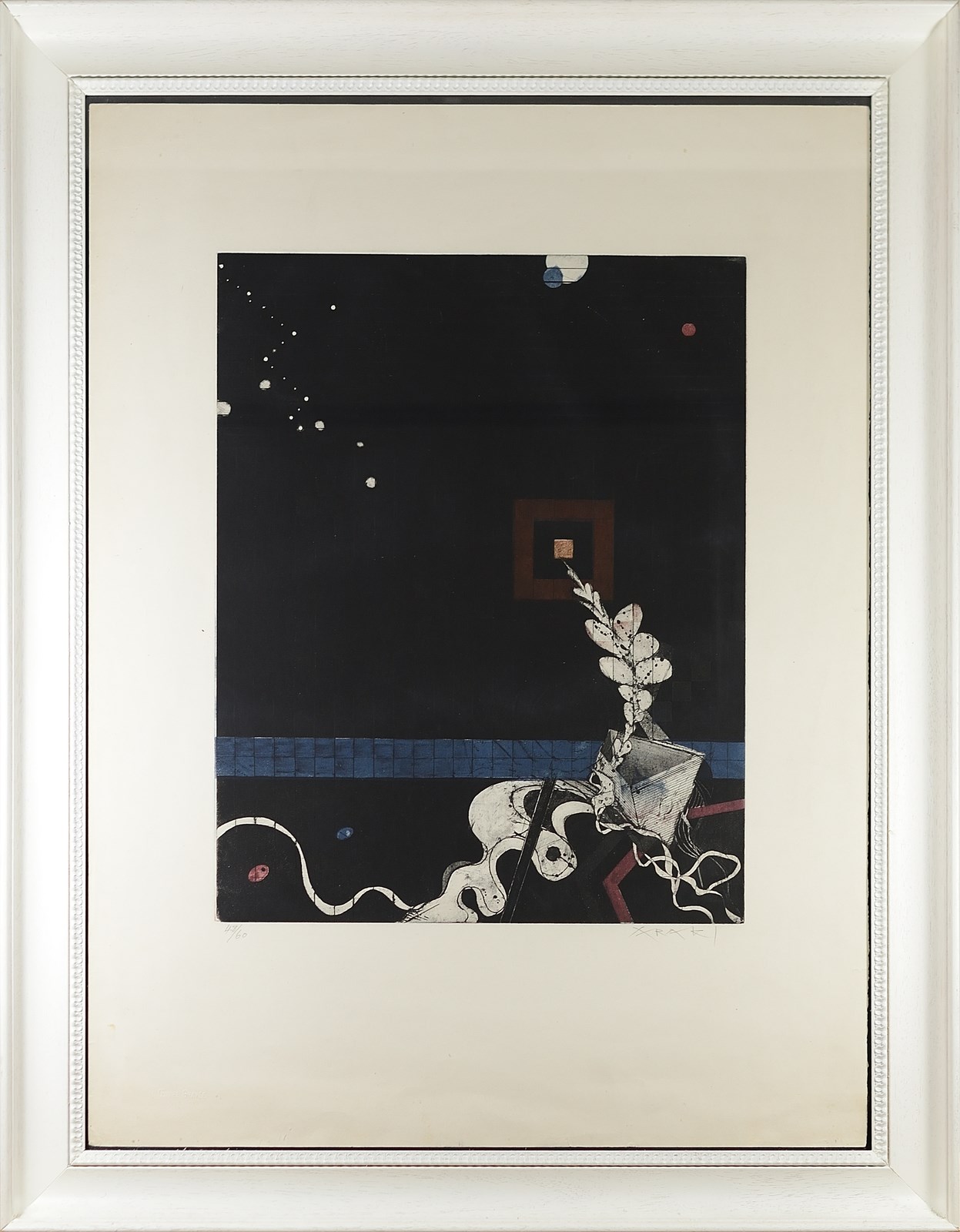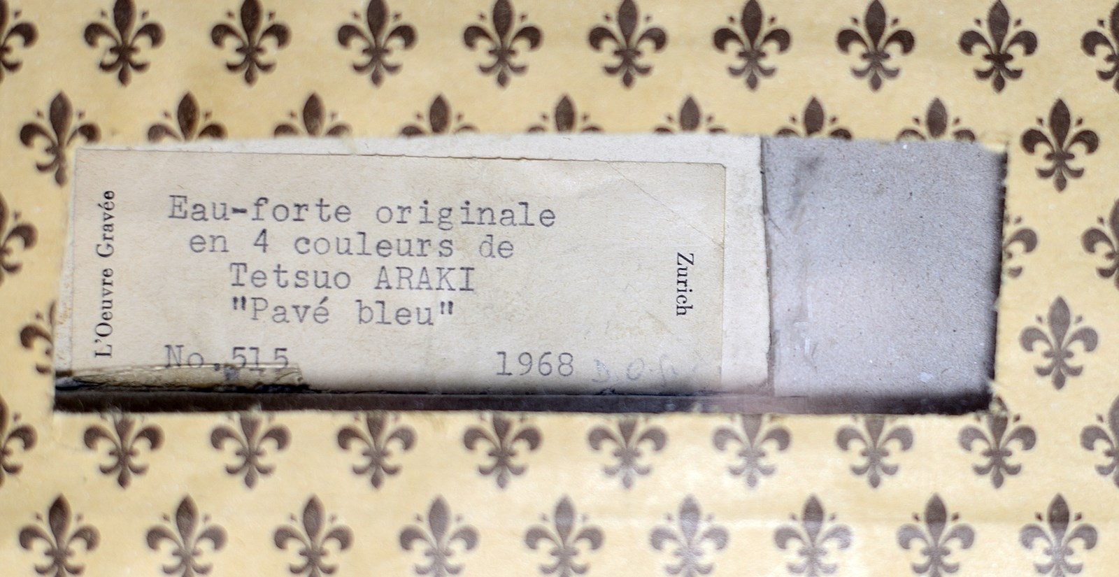 ARAKI TETSUO (1937 - 1984) Paveé bleu. 1968. Acquaforte a colori. Cm 58,00 x 77,00. Es. 48/60 . Foglio cm 77 x 58 lastra cm 40 x 50. Firma e tiratura a matita. Cornice presente