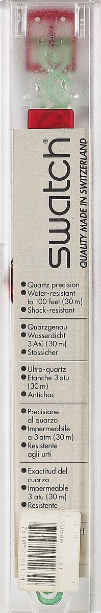 SCHARF KENNY (n. 1958) Monster tima. (modello GRI 121). Orologio. Cm 23,00 x 3,00. Orologio da polso SWATCH, edizione 1993/1994. Firma a pennarello sul posino.