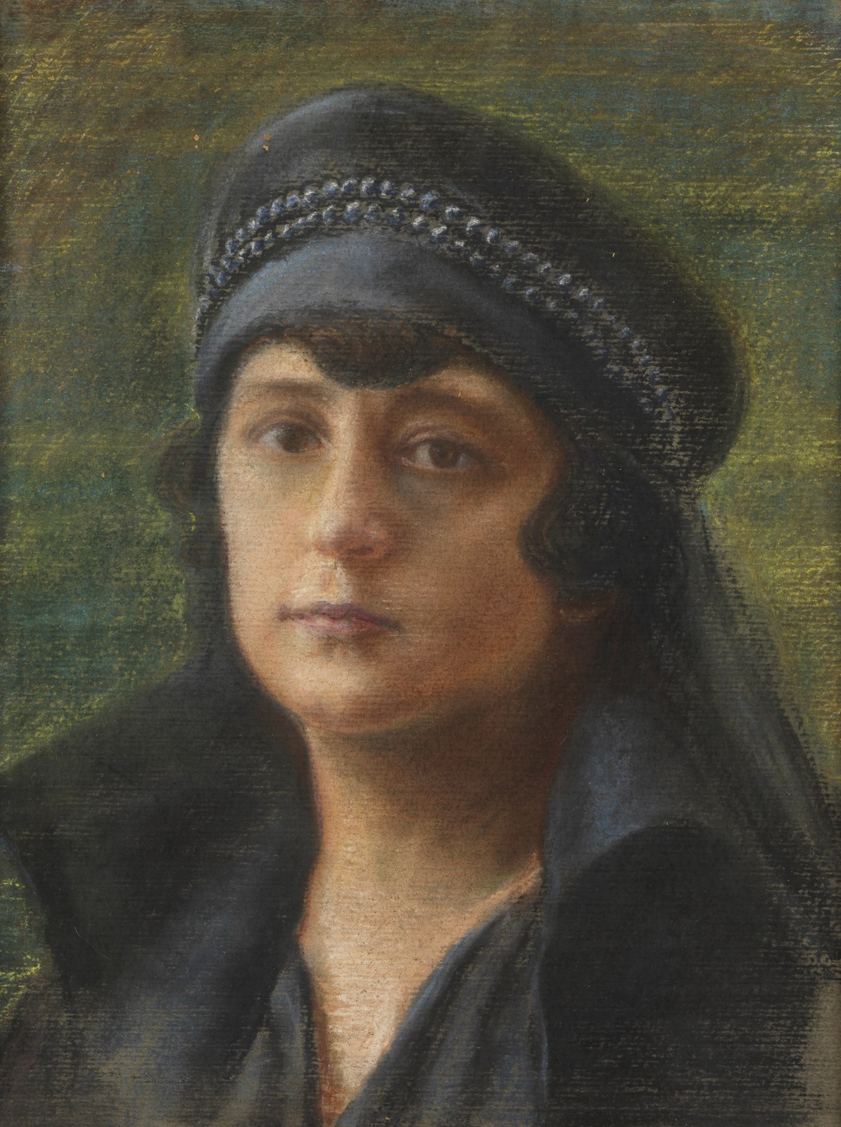 PITTORE DELLA FINE DEL XIX SECOLO Ritratto di donna ( probabilmente ritratto della regina Elena di Savoia). Pastelli su carta. Cm 35,00 x 45,00. . Cornice presente