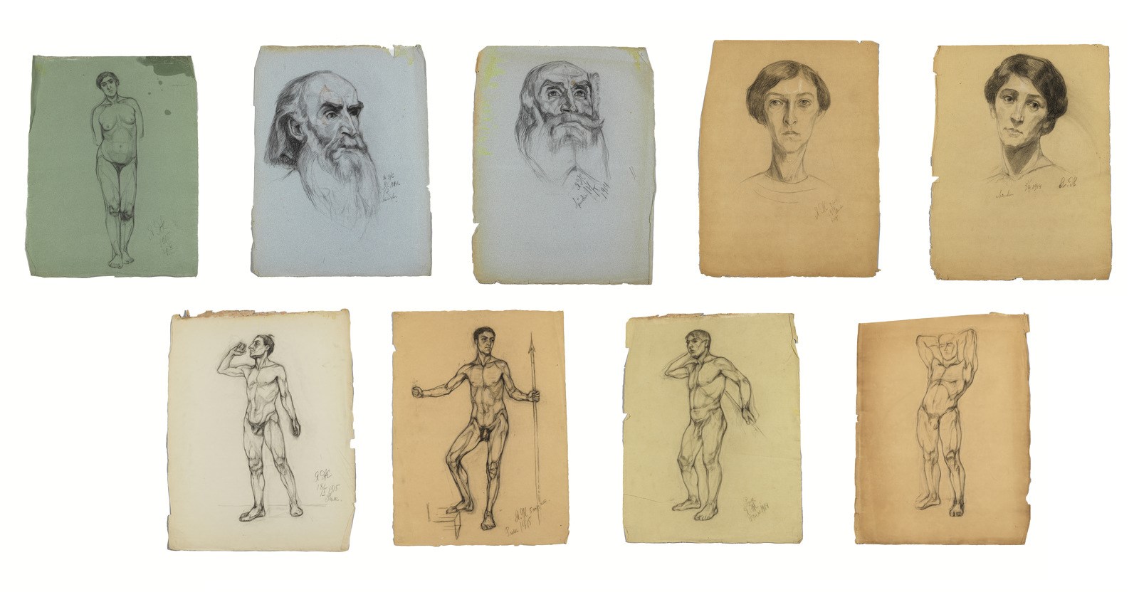 ARTISTA TEDESCO DEL XX SEC - Lotto composto da n.9 disegni. Studio di nudi e ritratti.