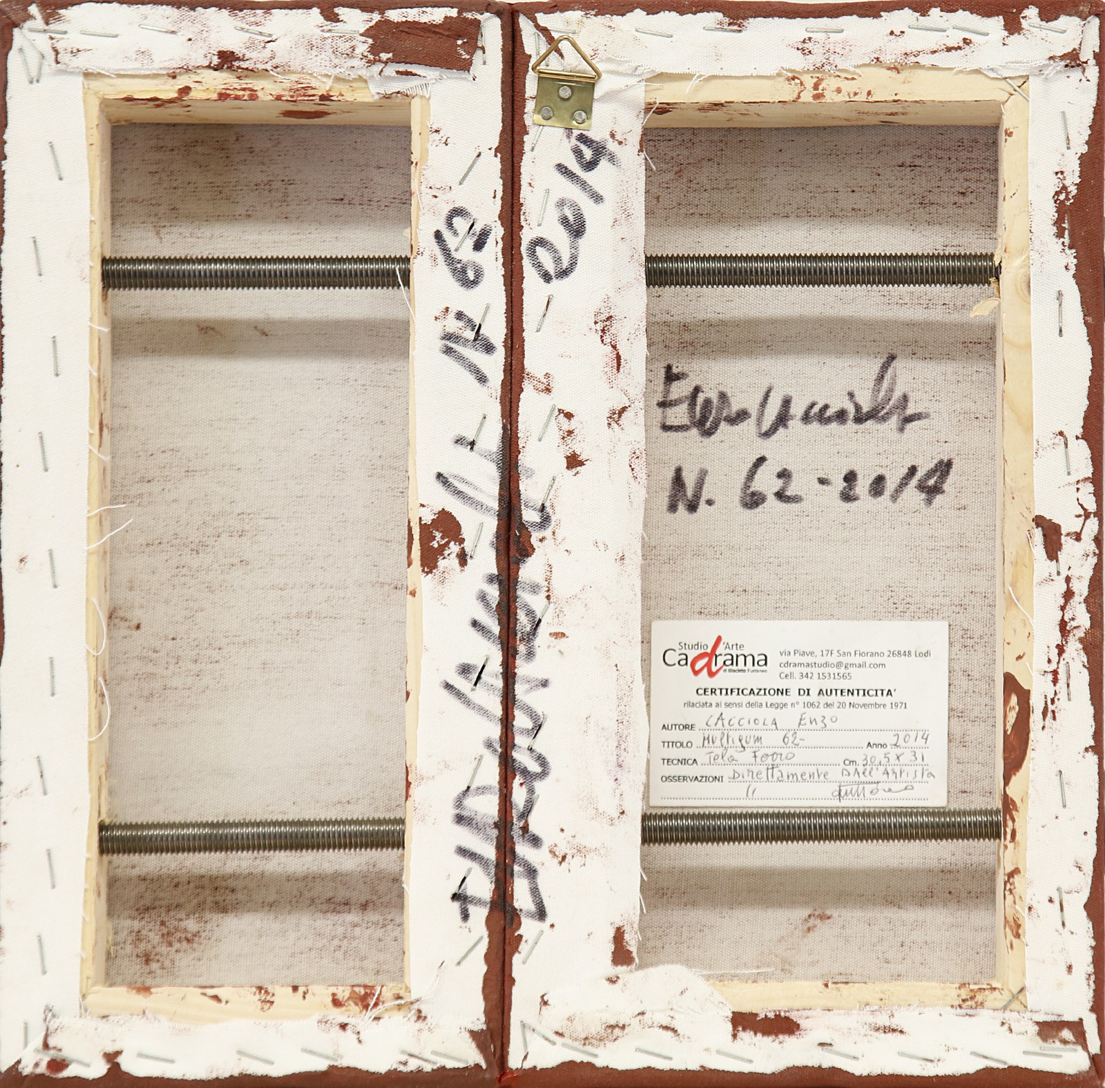 CACCIOLA ENZO (n. 1945) Multigum 62. 2014. Tecnica mista su tela. Cm 31,00 x 30,50. Al retro firma, titolo, anno e cartiglio descrittivo Cadrama, Lodi.